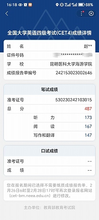 赵宣卉通过大学英语四级